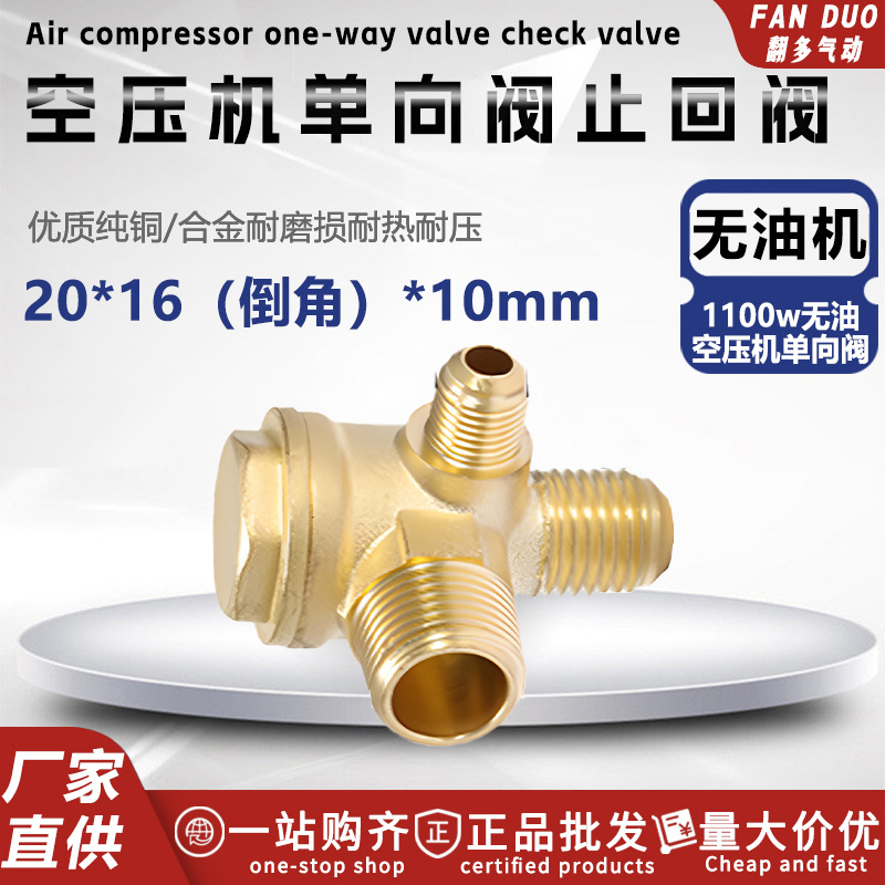 1.1kwオイルフリーエアコンプレッサ単方向弁エアポンプ圧力逆止弁三方10*16*20mm