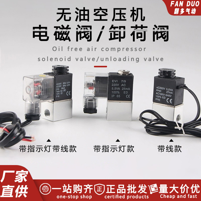 オイルフリーエアコンプレッサ電磁弁単方向リリーフ弁静音小エアポンプ部品四方向弁電磁制御弁