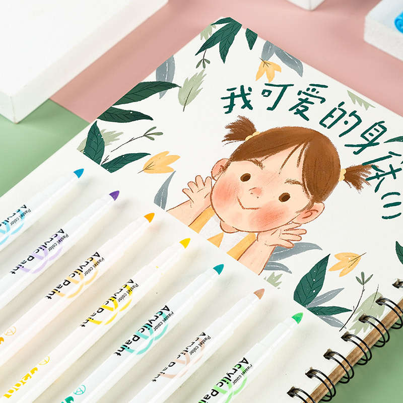 広纳6100ダブルヘッドパステルアクリルペン防水手描きdiy落书きアクリル絵の具ペン丸ヘッド细い头アクリル