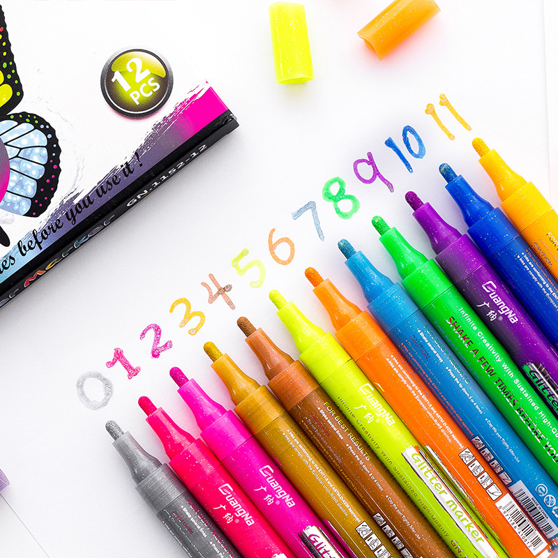 広納S535-12色金属フラッシュペンdiyグリーティングカードマーカー美術画材落書きペン手帳カラーペン