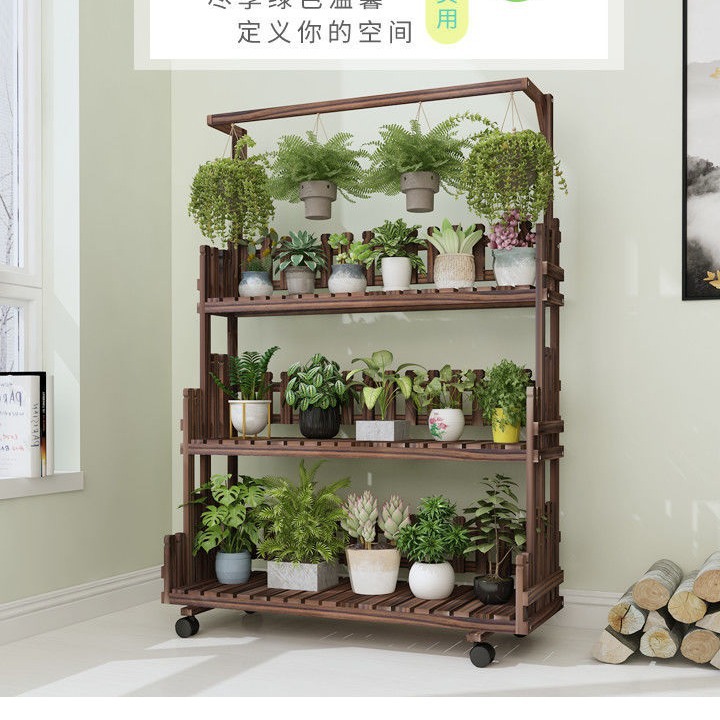無垢材の吊り下げ蘭棚多層バルコニー折りたたみ植木鉢収納ラックシンプルな屋内リビングルームクリエイティブ多肉植物フラワーラック