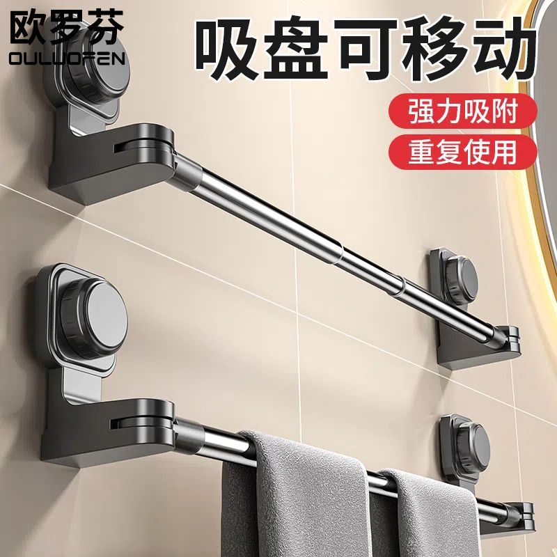 吸盤タオルバー壁掛け浴室シャワールーム収納ラックパンチフリー格納式吊り下げバーバスタオルラック