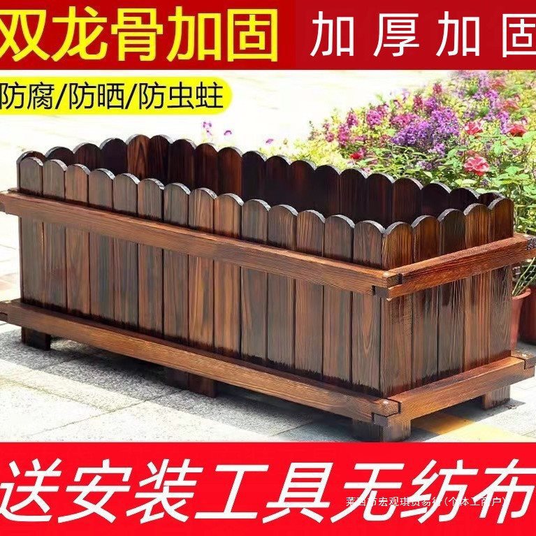 屋外中庭長方形植栽ボックス大型無垢材フラワーボックス屋外植木鉢バルコニー野菜植栽ボックス防錆木製フラワーボックス