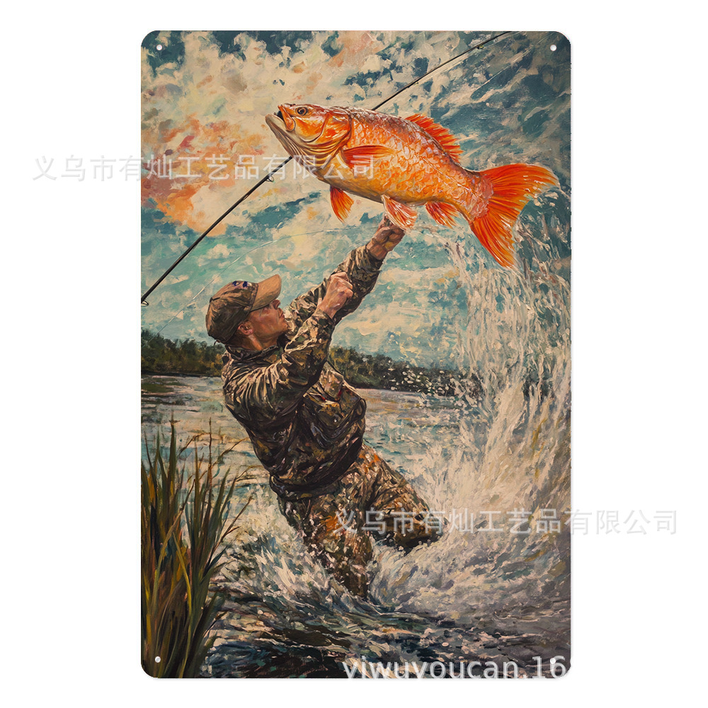 Yucan 印刷吊り絵画工芸品卸売釣り人吊り装飾壁装飾外国貿易金属看板ブリキ絵画