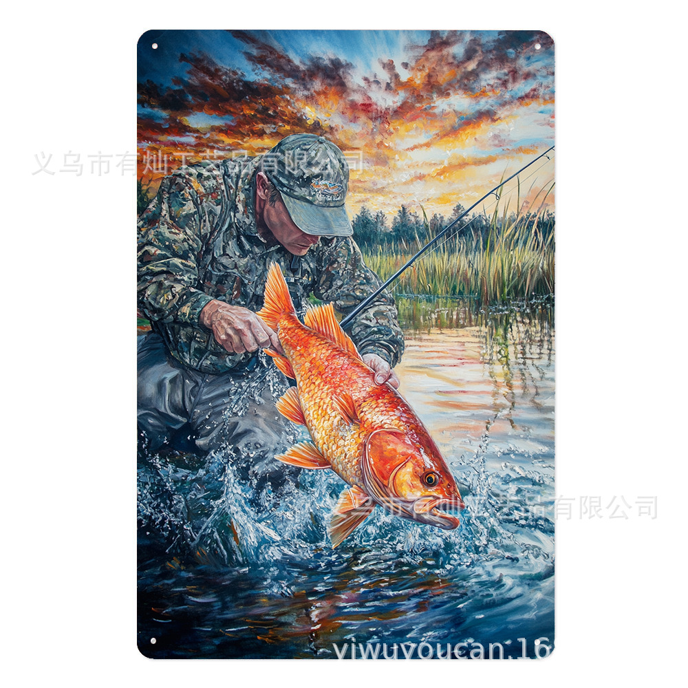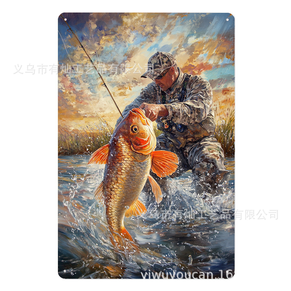 Yucan 印刷吊り絵画工芸品卸売魚の池釣り人吊り装飾壁装飾外国貿易金属広告