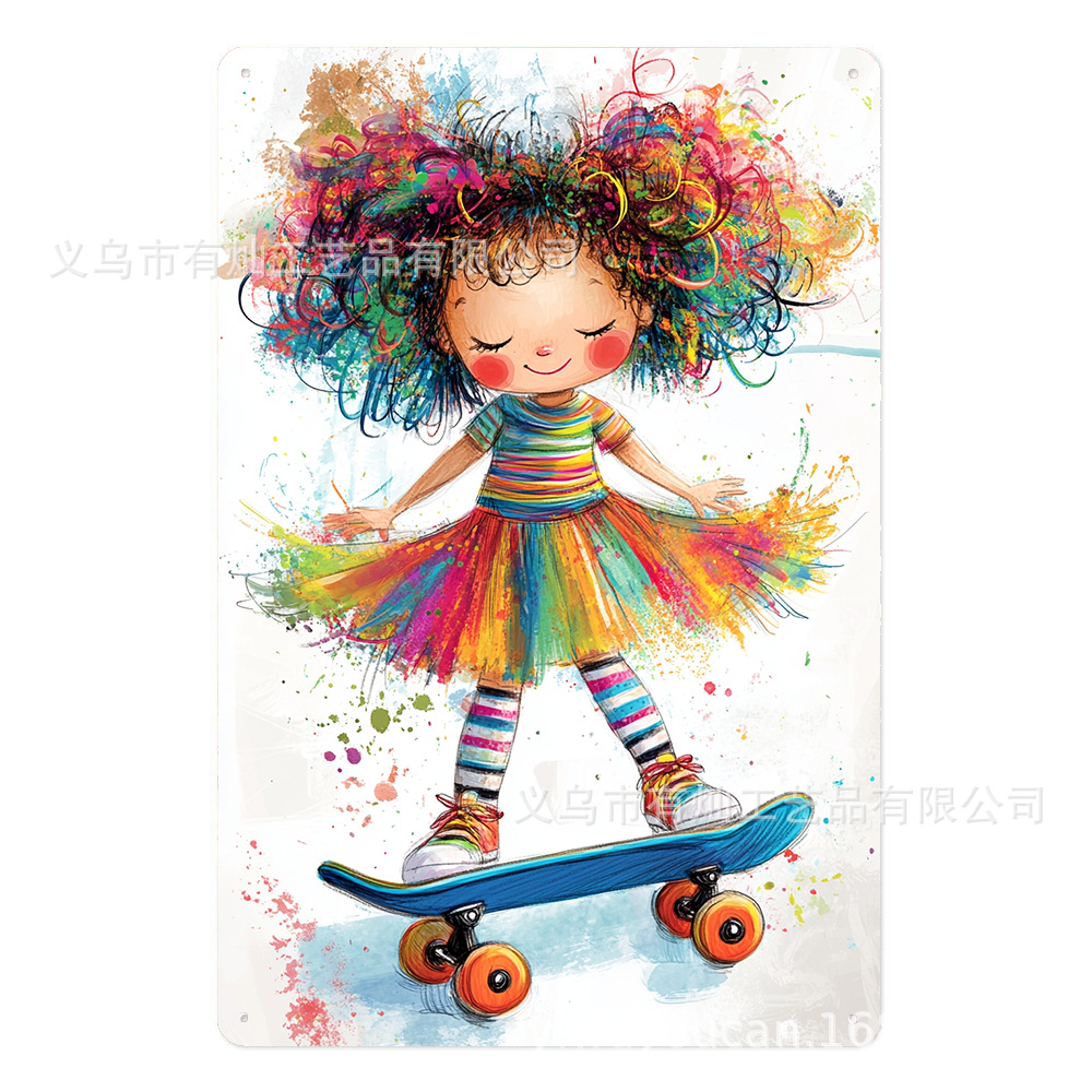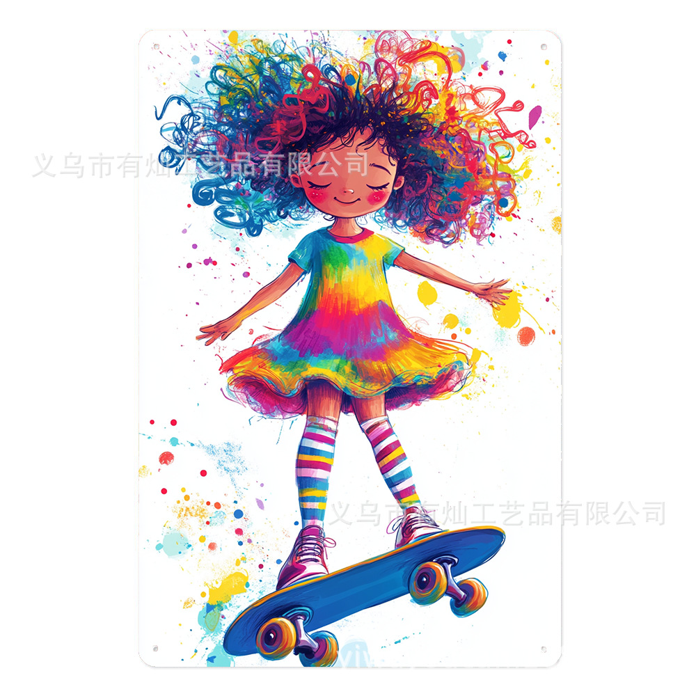 スケートボードガール壁装飾ヴィンテージメタルブリキサインスケートボードガール
