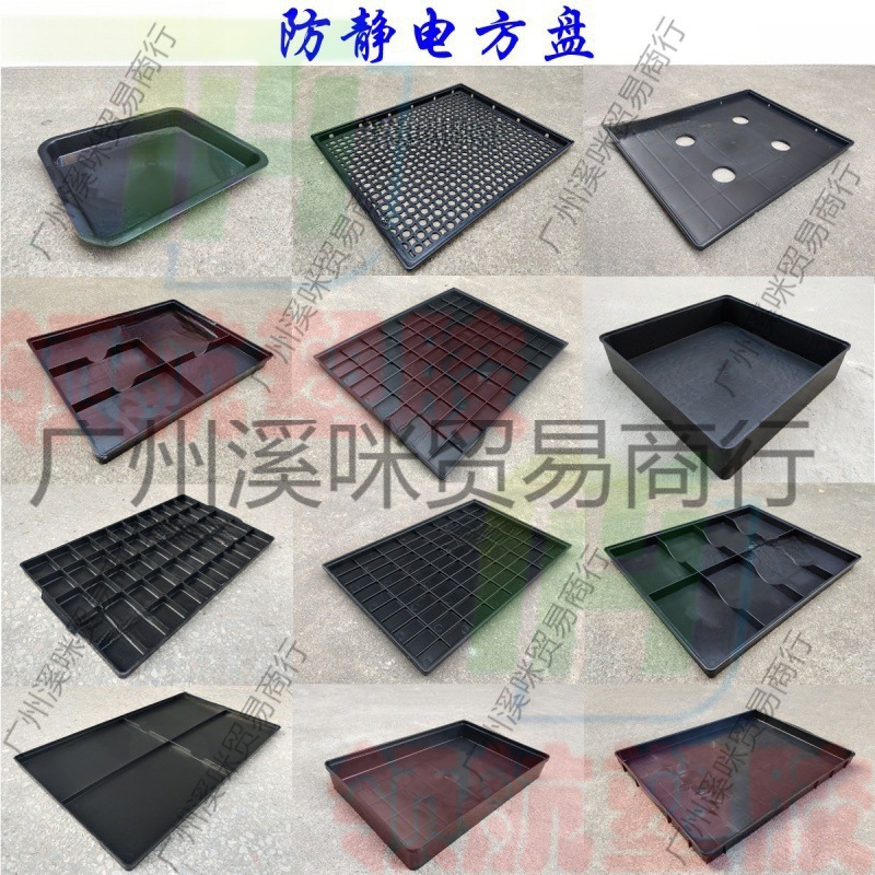 黒の静電気防止トレーの四角い皿の皿の格子トレーの電子材料はプラスチックの平口を収納します。