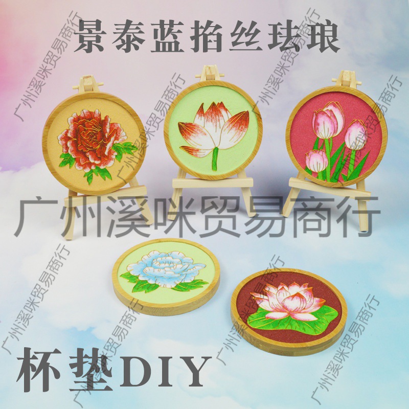 景泰藍非遺留絞め糸エナメル画コースターdiy手作業入門材料包工具千里江山図波