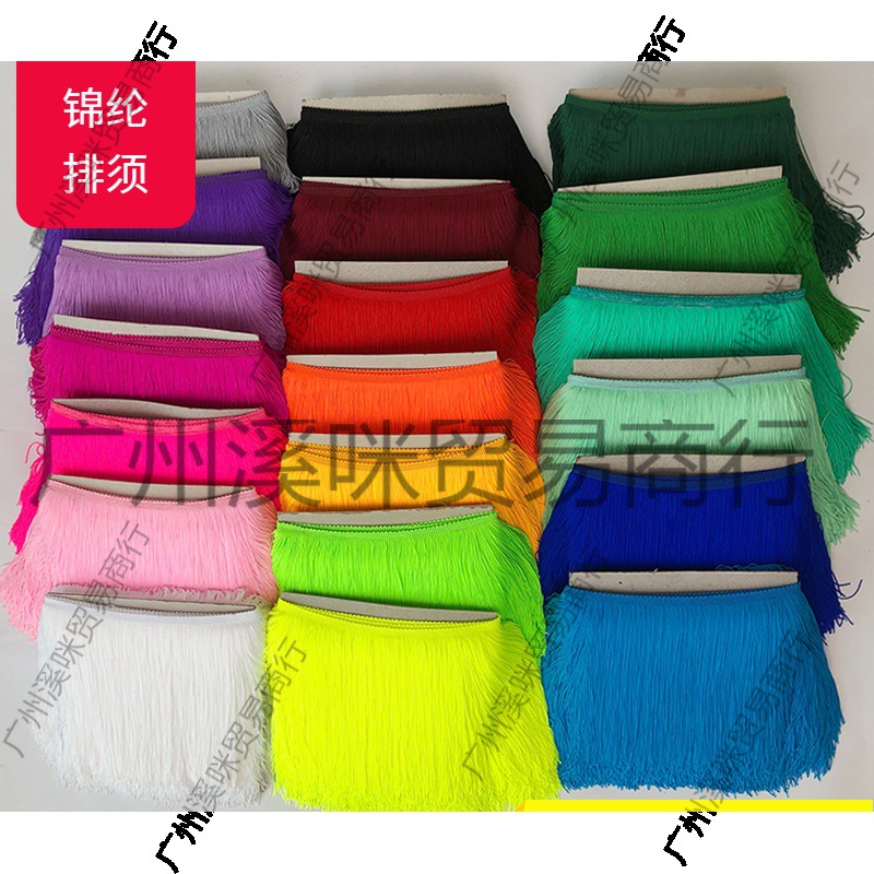 現物の服のレースの補助材料のひげのラテンのダンスの流蘇の20cmの双線のナイロンの流蘇のカーテンのレースの卸売り