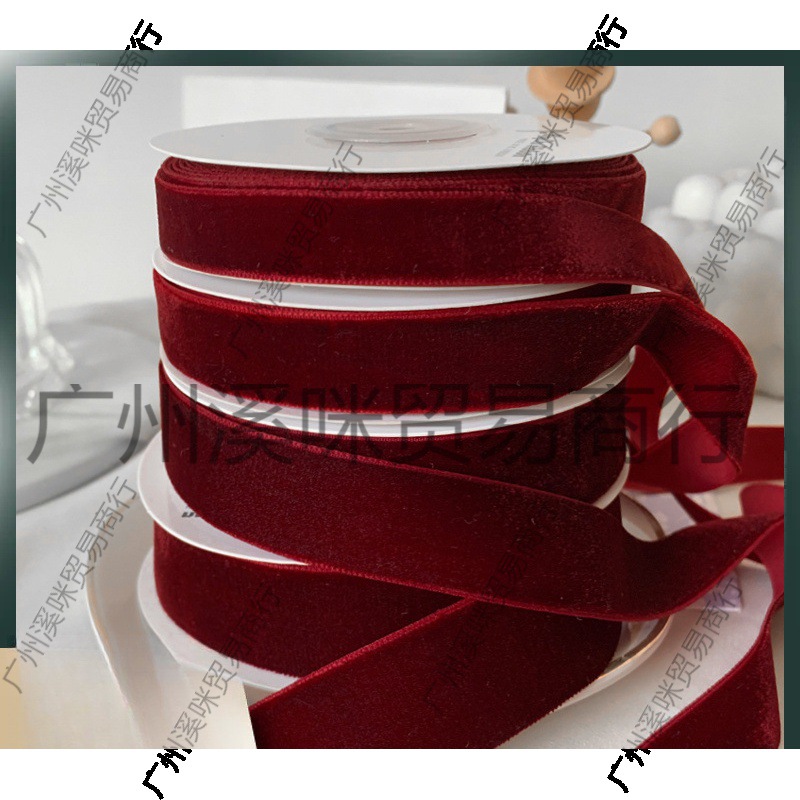ワインレッド片面両面ベルベットリボンベルベット植毛リボンdiy手作りリボン花束包装プレゼント
