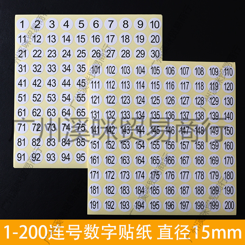 番号シールサイズラベル円形15mm番号ラベル1-200連番ラベル