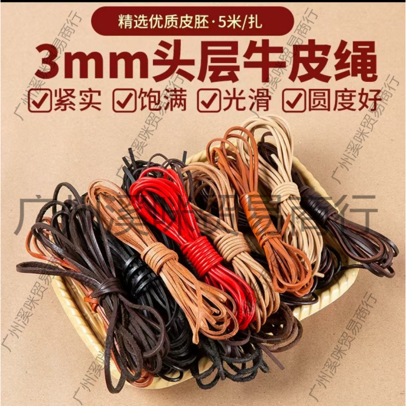 本革の頭の層の牛革の縄は3mmの丸い首の牛革の縄の糸のdiyの手のブレスレットのネックレスの縄の革のひもを包みます
