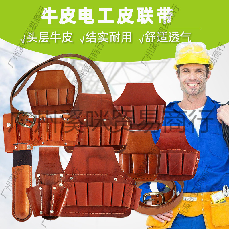 電気工のベルトの頭の層の純粋な牛革の電気工のベルトの皮のカバーのツールバッグのはさみのセットの電気工の五連の皮の三連の皮の五連