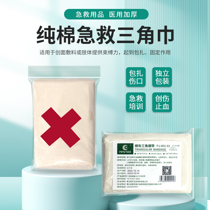学生は白い厚い三角形の包帯の白い綿の三角巾を訓練します。