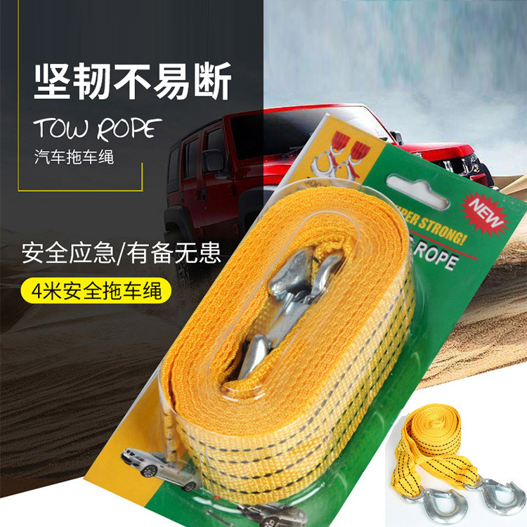 ナイロン双平ロープ蛍光牽引ロープ車用自動車強力牽引ロープ4メートル3トン牽引ベルトカード包装