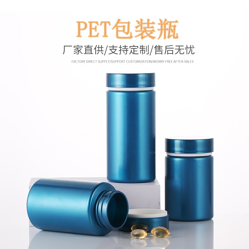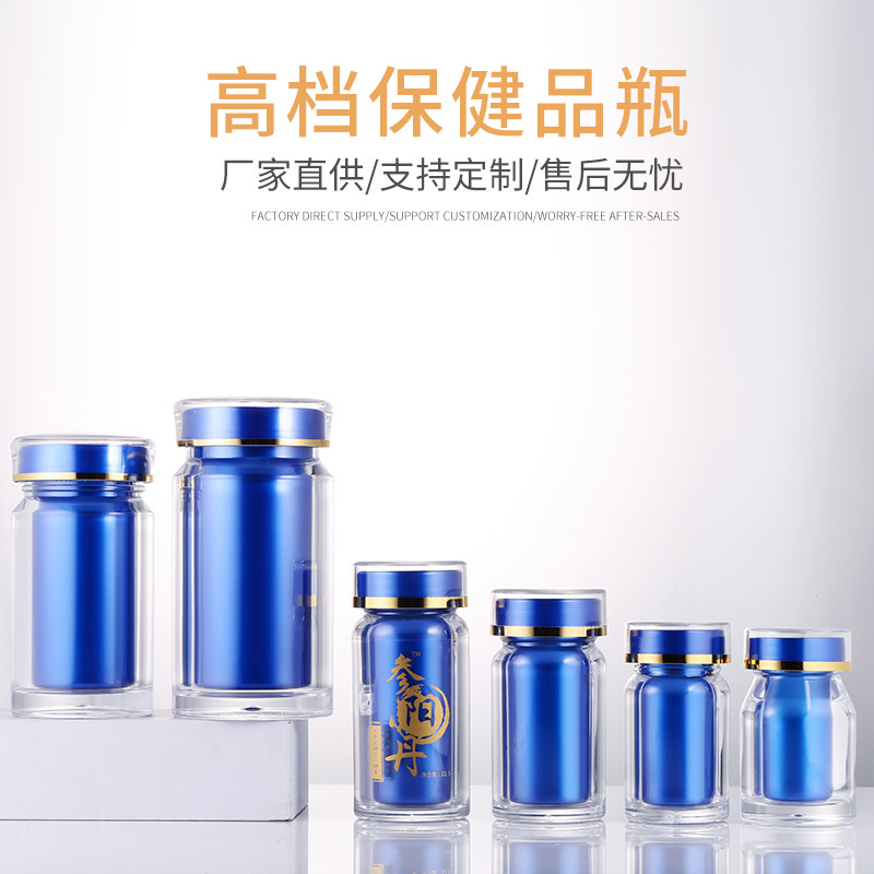 メーカー直販健康食品分注瓶卸売りカプセル瓶青い弾丸固体包装瓶ロゴ印刷
