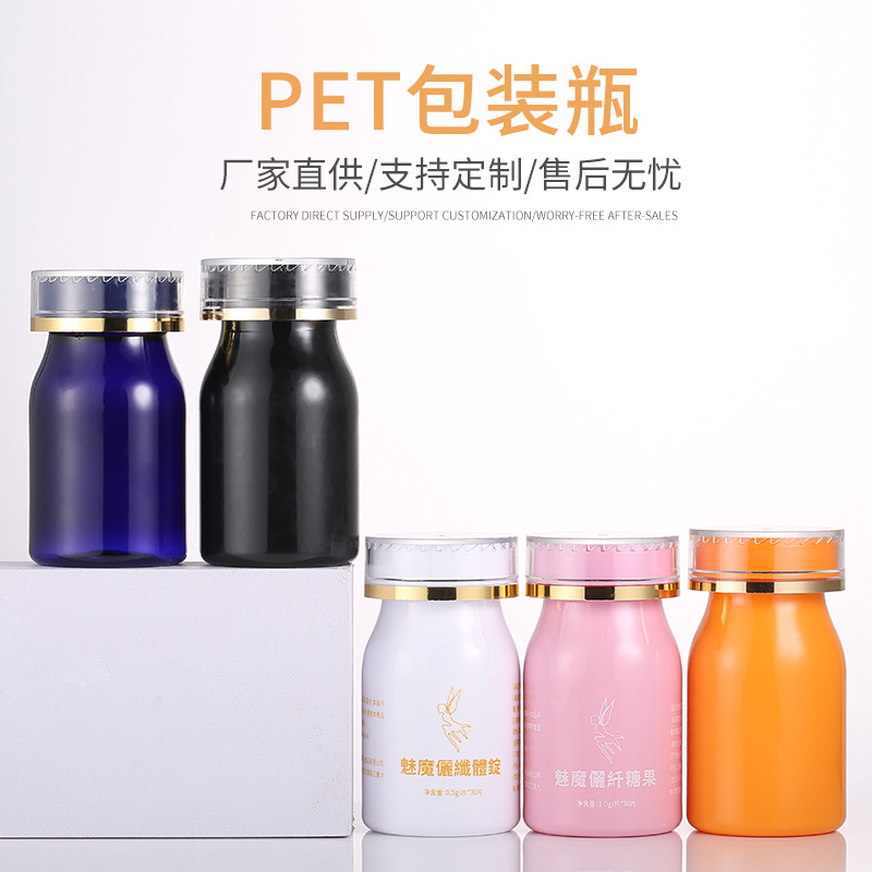 メーカーは60mlのキャンディー瓶を直接承認しました。30粒は避光カプセル瓶の高級アクリル保健品瓶を入れて卸売りします。