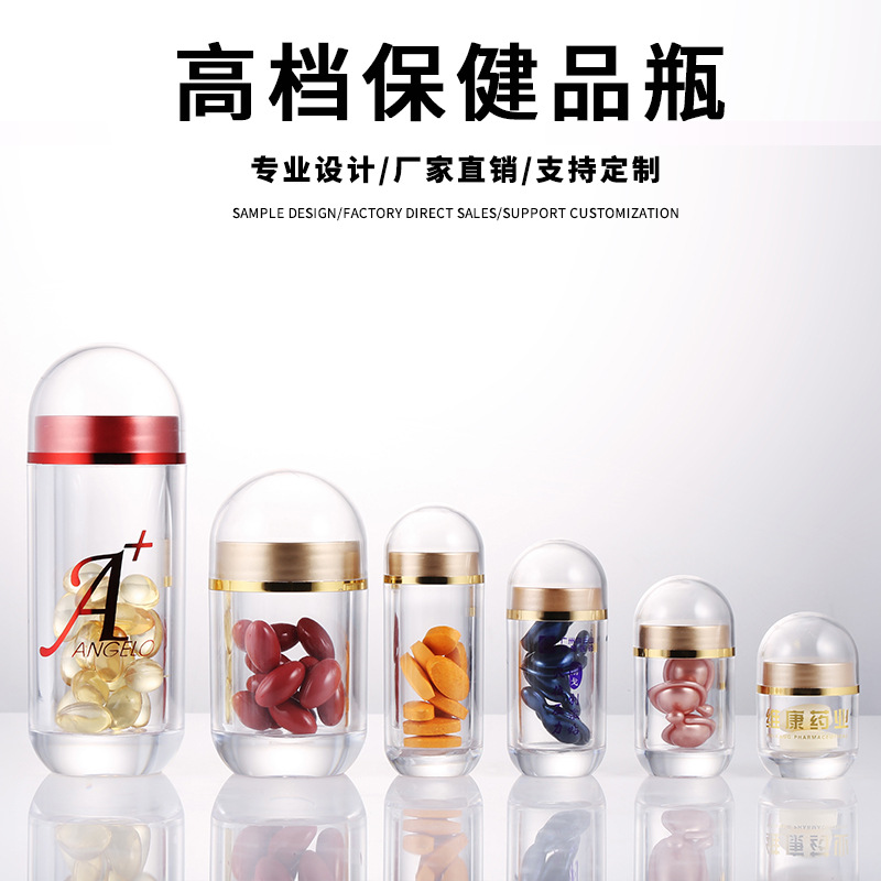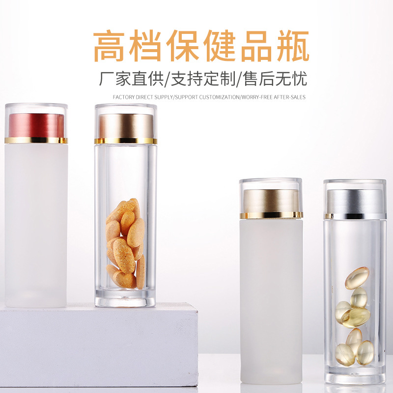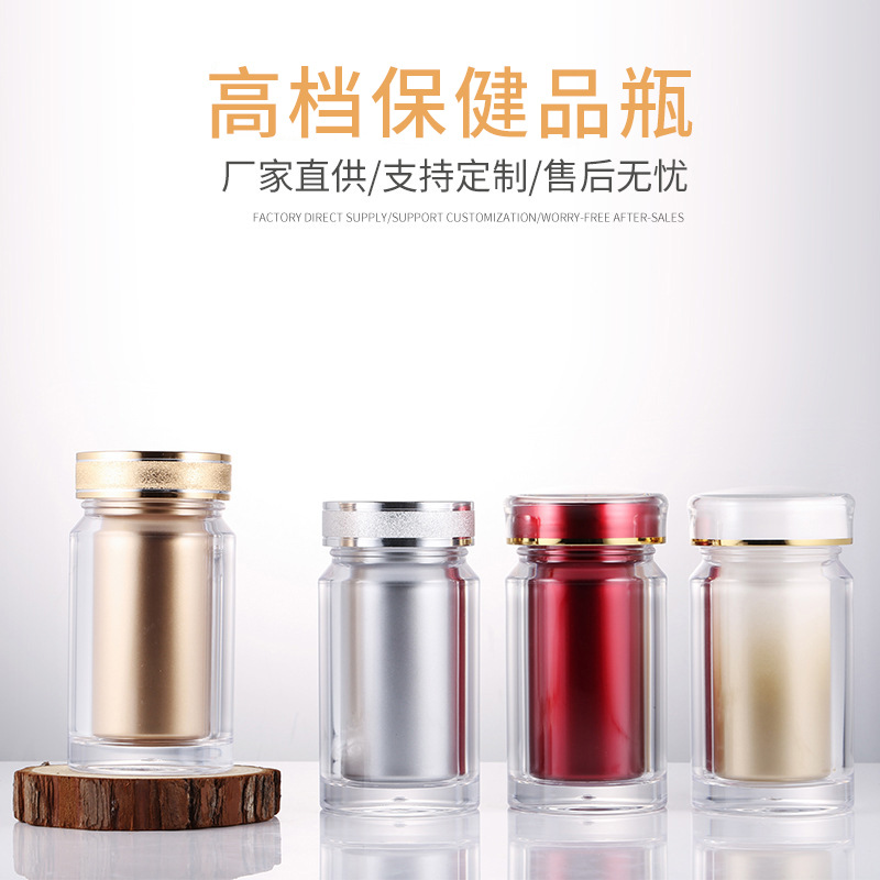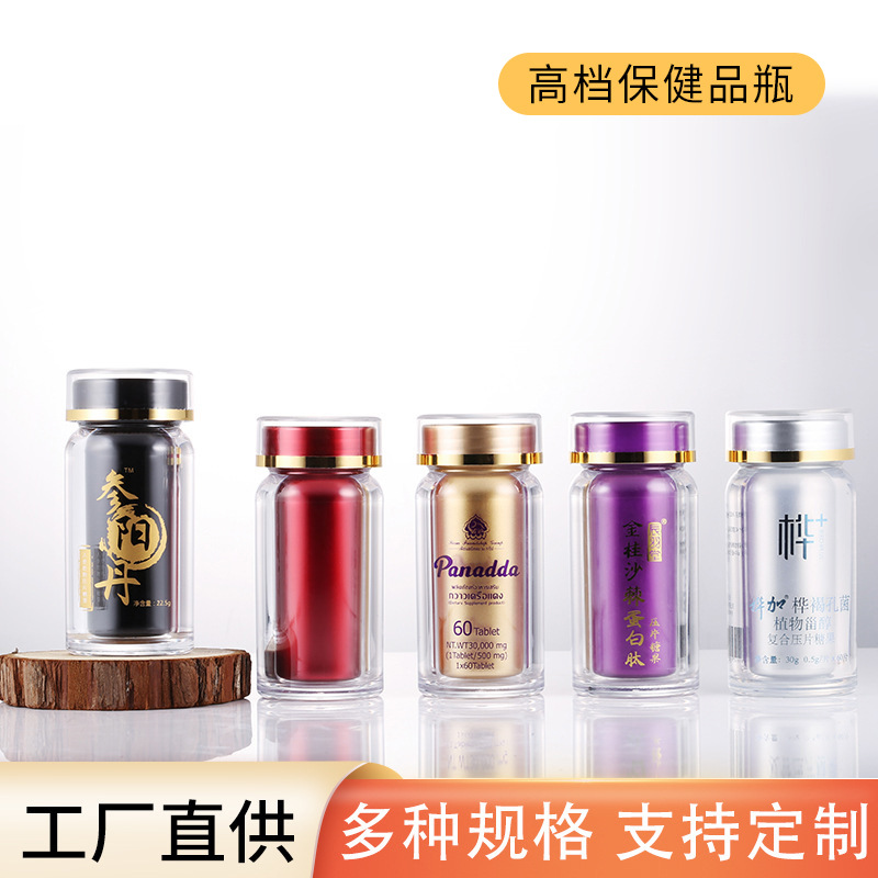工場現物二重遮光アクリルカプセル瓶高級食品級ps健康食品分注瓶粉末瓶