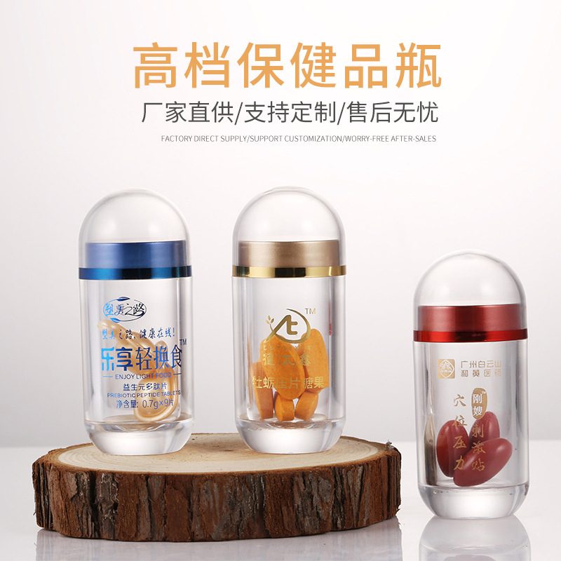 メーカー直供カスタム20ml高級アクリル保健品瓶圧片キャンディー瓶カプセル瓶チベット紅花瓶