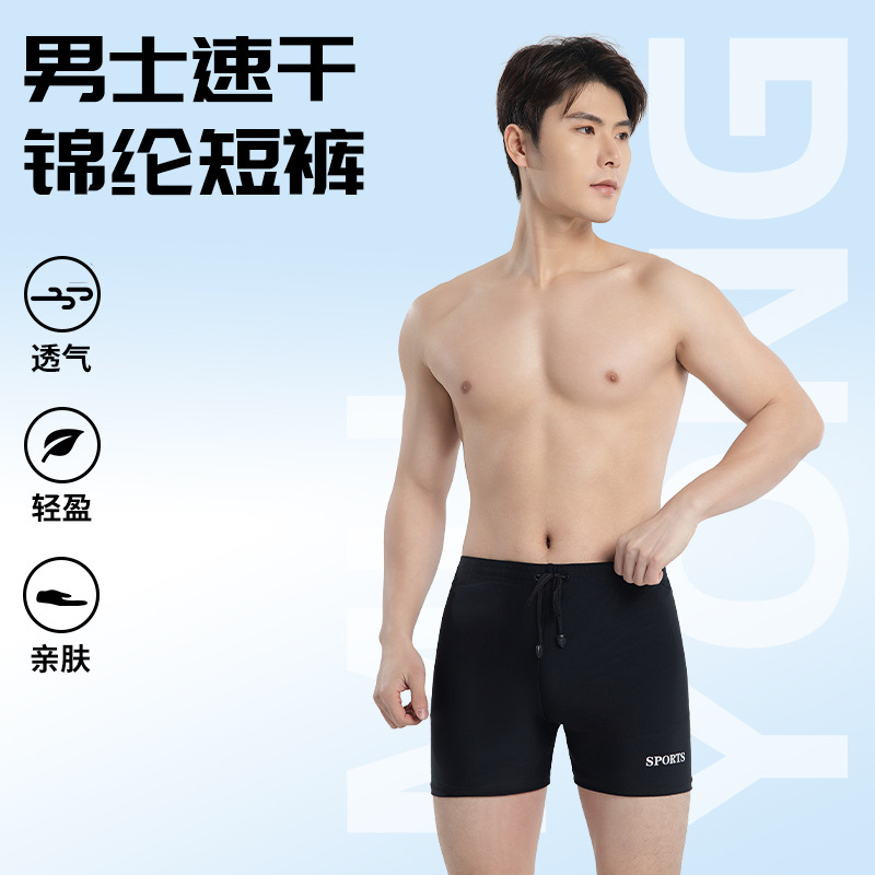 夏の新しい大人の大きいサイズのメンズスポーツ休暇ピュアブラック水泳パンツスポーツ速乾性通気性ビーチアウトドア水泳パンツ