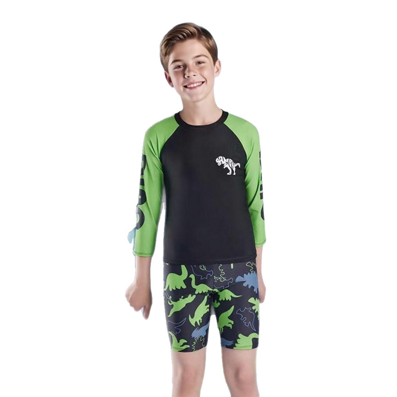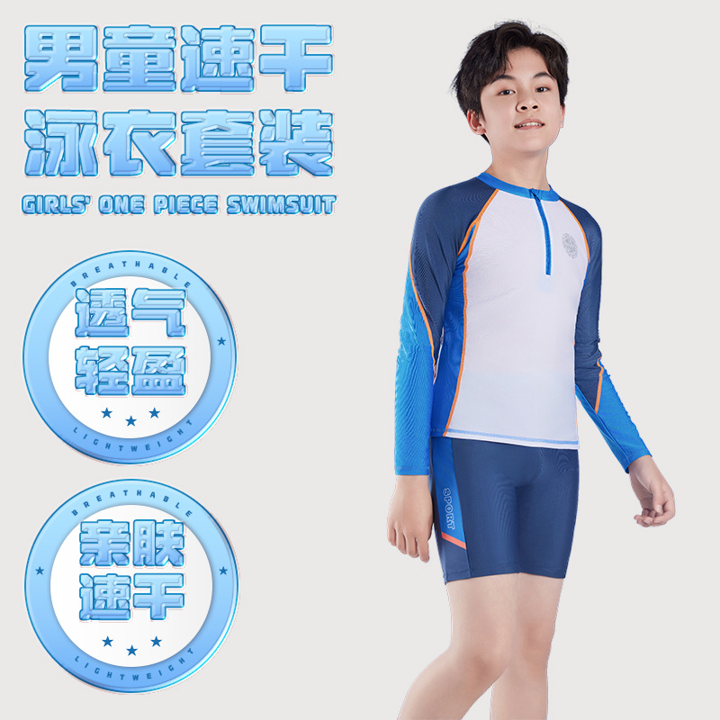子供用水着 長袖 ボクサーボーイズ スプリット速乾水着と水泳パンツ 中型および大型 子供用水泳 2点セット 男の子とティーンエイジャー