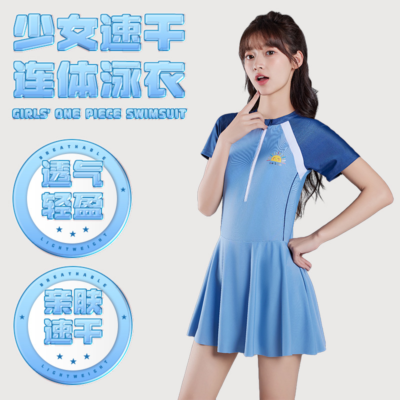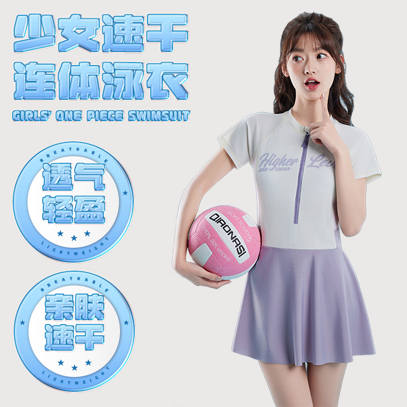 女の子水着 2025年夏新作 中学生女子向け おしゃれなワンピース水着 学生向け コンサバ水着