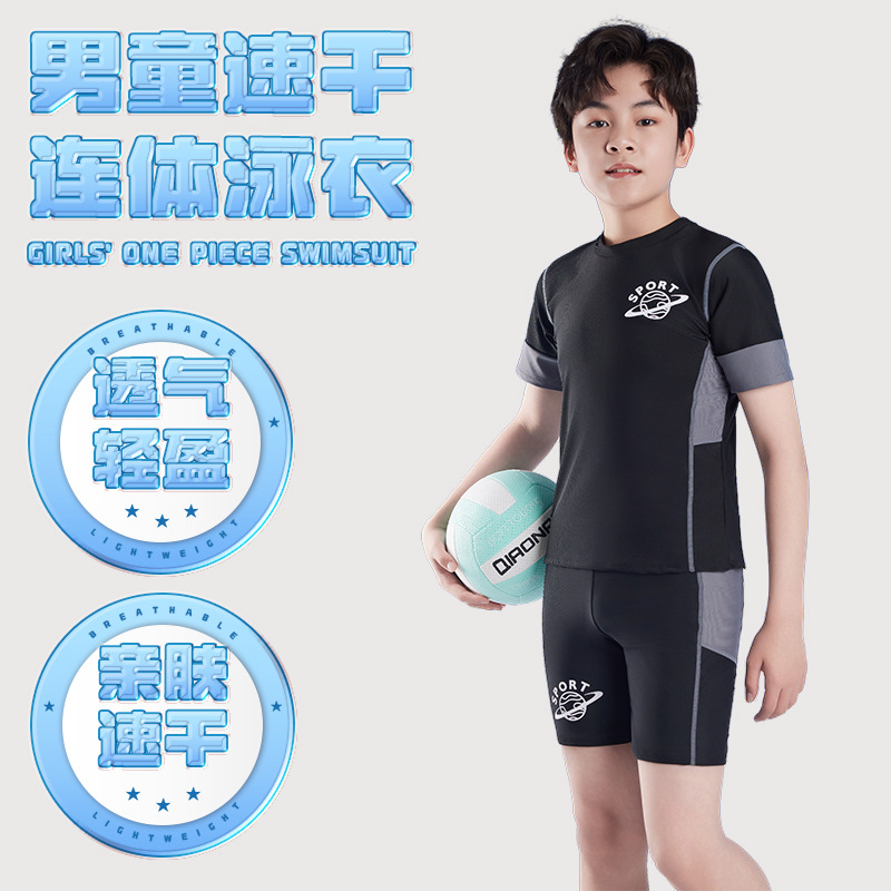 子供水着男の子新作スプリット中大型子供速乾水着水泳パンツ男の子プールトレーニング2点セット