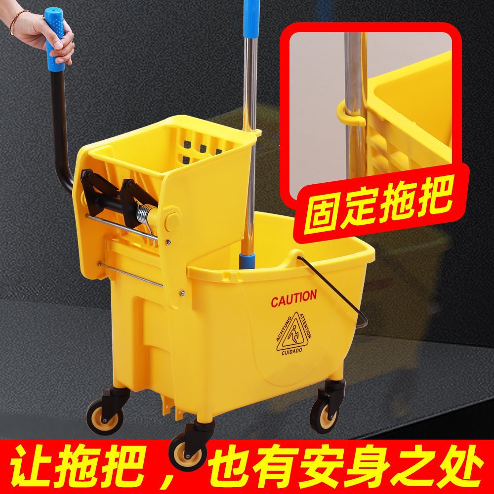 清潔な水車は水車を搾って桶をモップします。