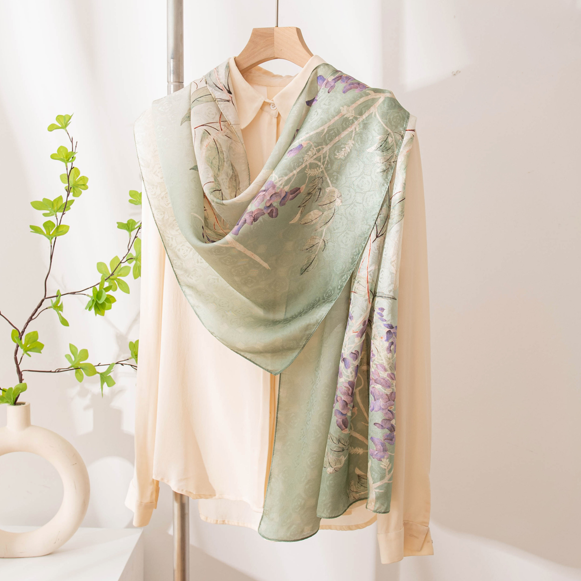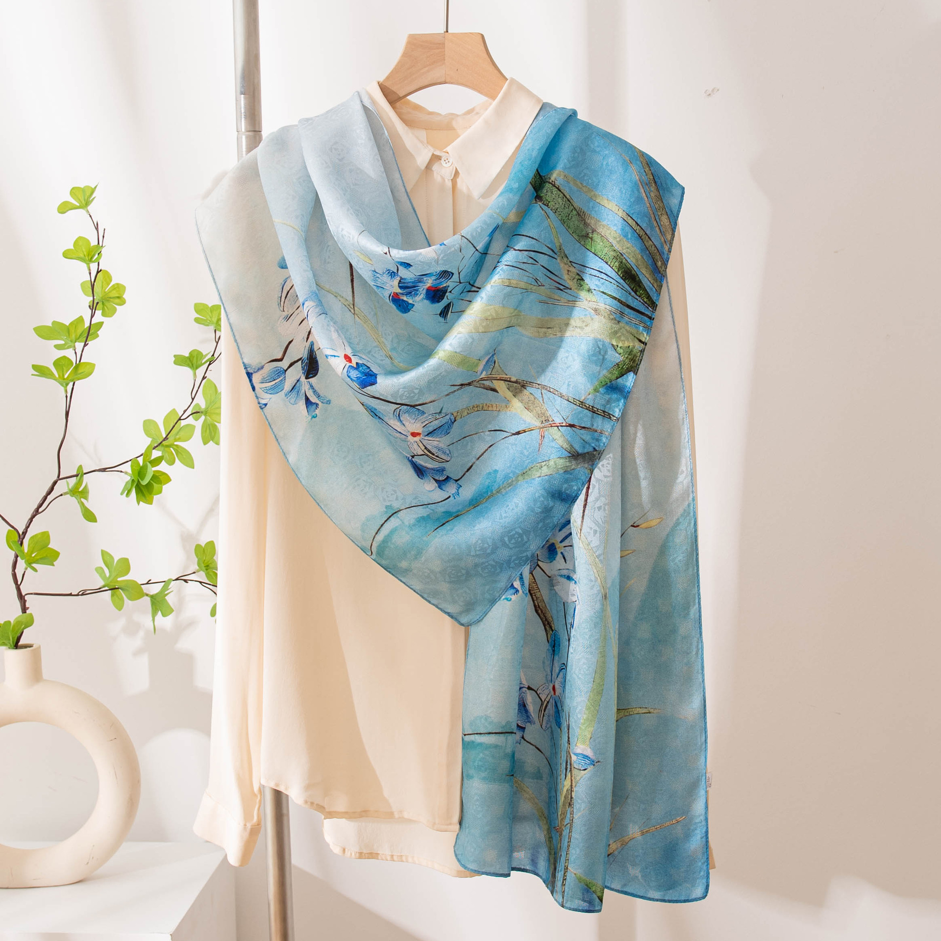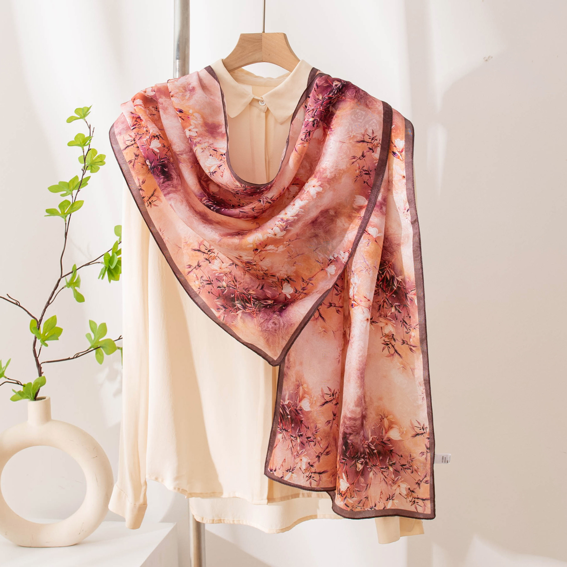 2025夏に国境を越えて起爆した100% 绢糸の薄いロングストール保温百合シルクスカーフ卸売り