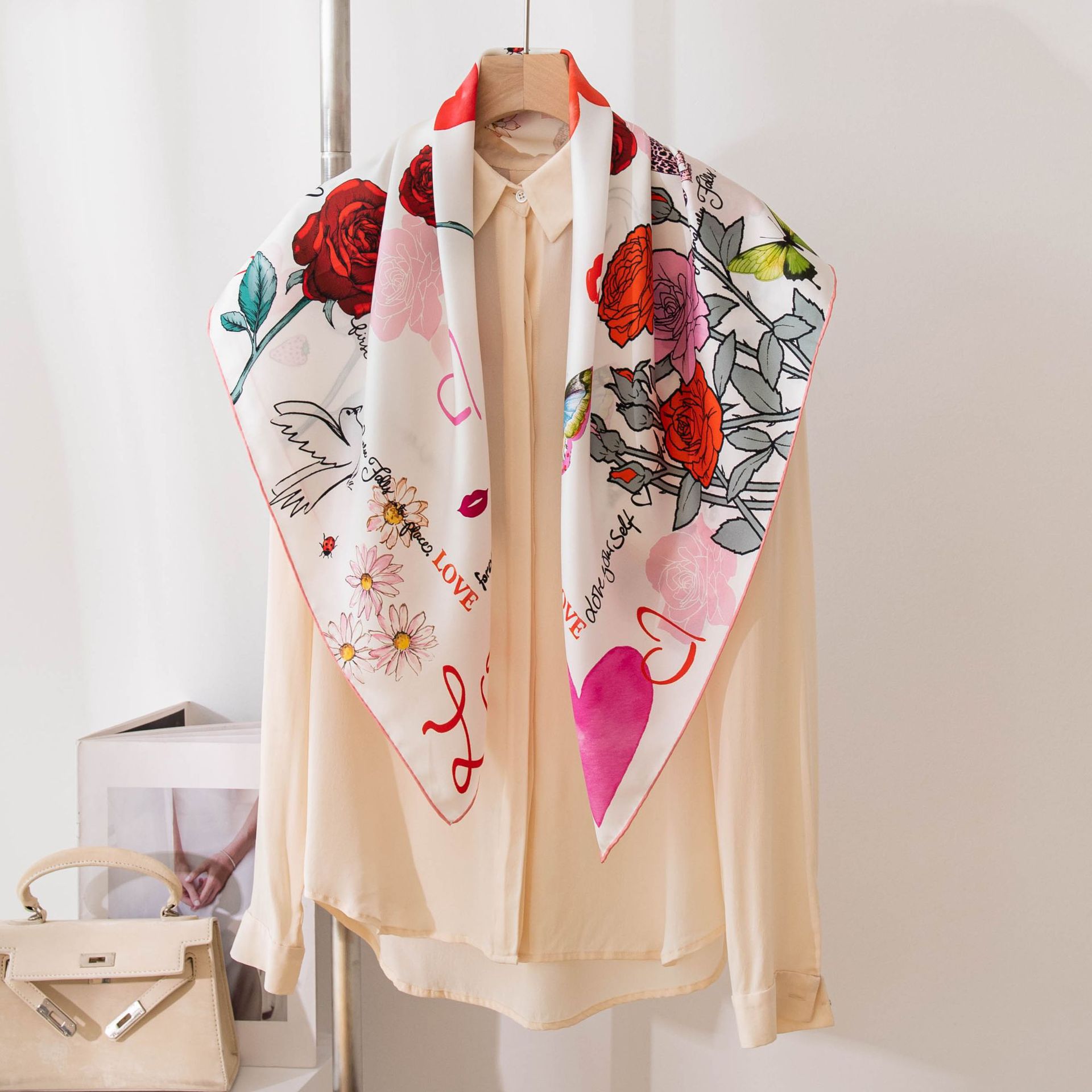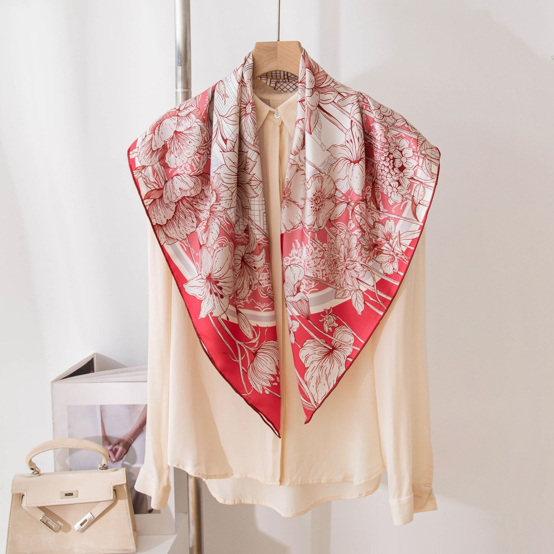 90 センチメートル新 100% 桑シルク大正方形スカーフ女性のショールスカーフシルクスカーフスカーフクロスボーダー卸売