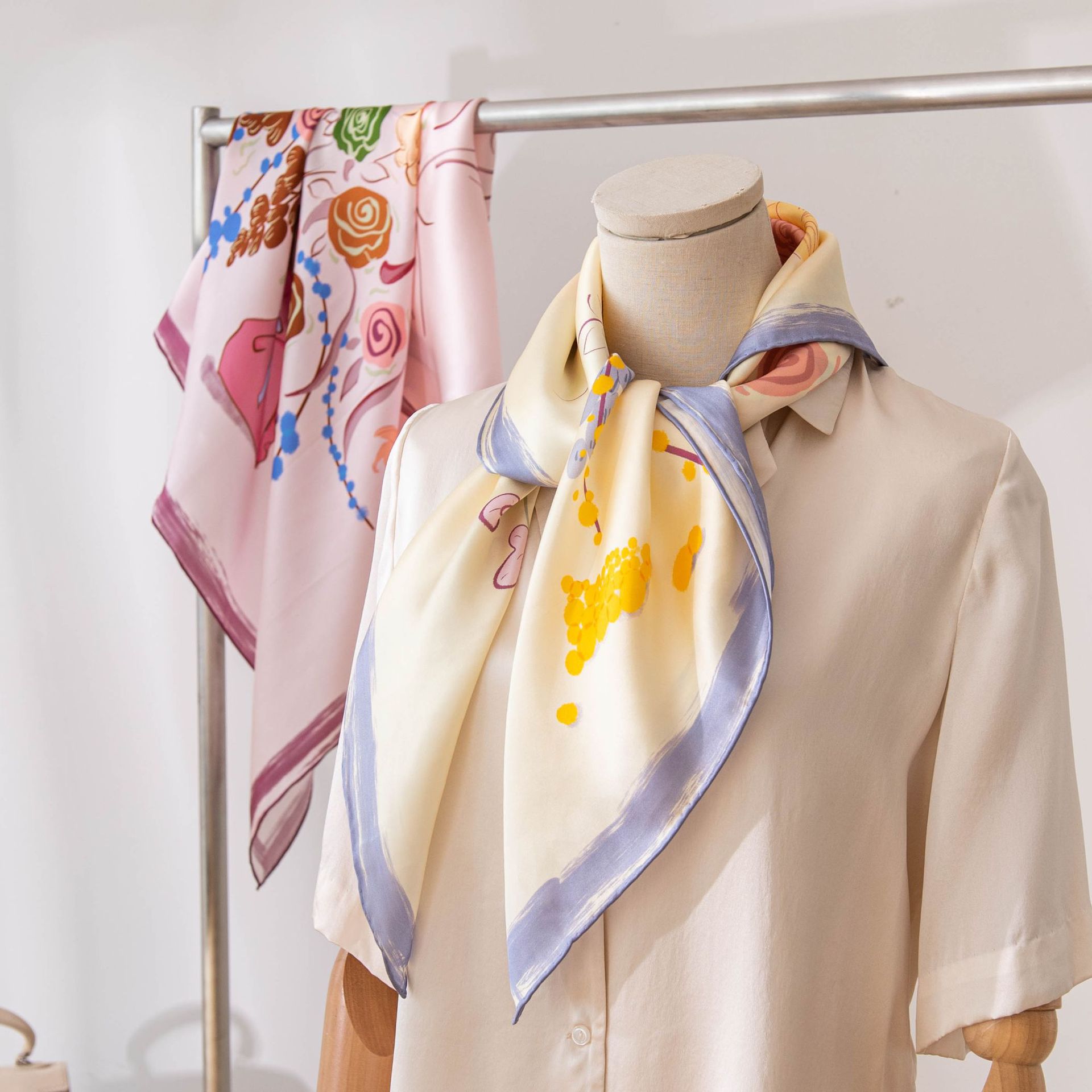2025 夏の新スタイル 100% 桑シルクシルクスカーフ大正方形スカーフ通勤アウタースカーフショールスカーフ卸売