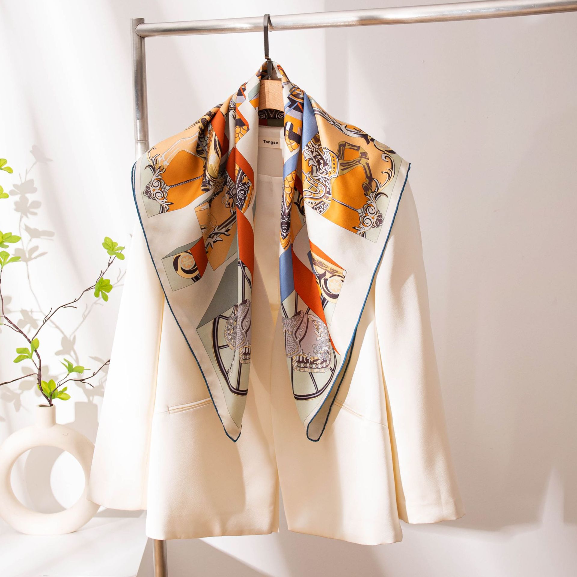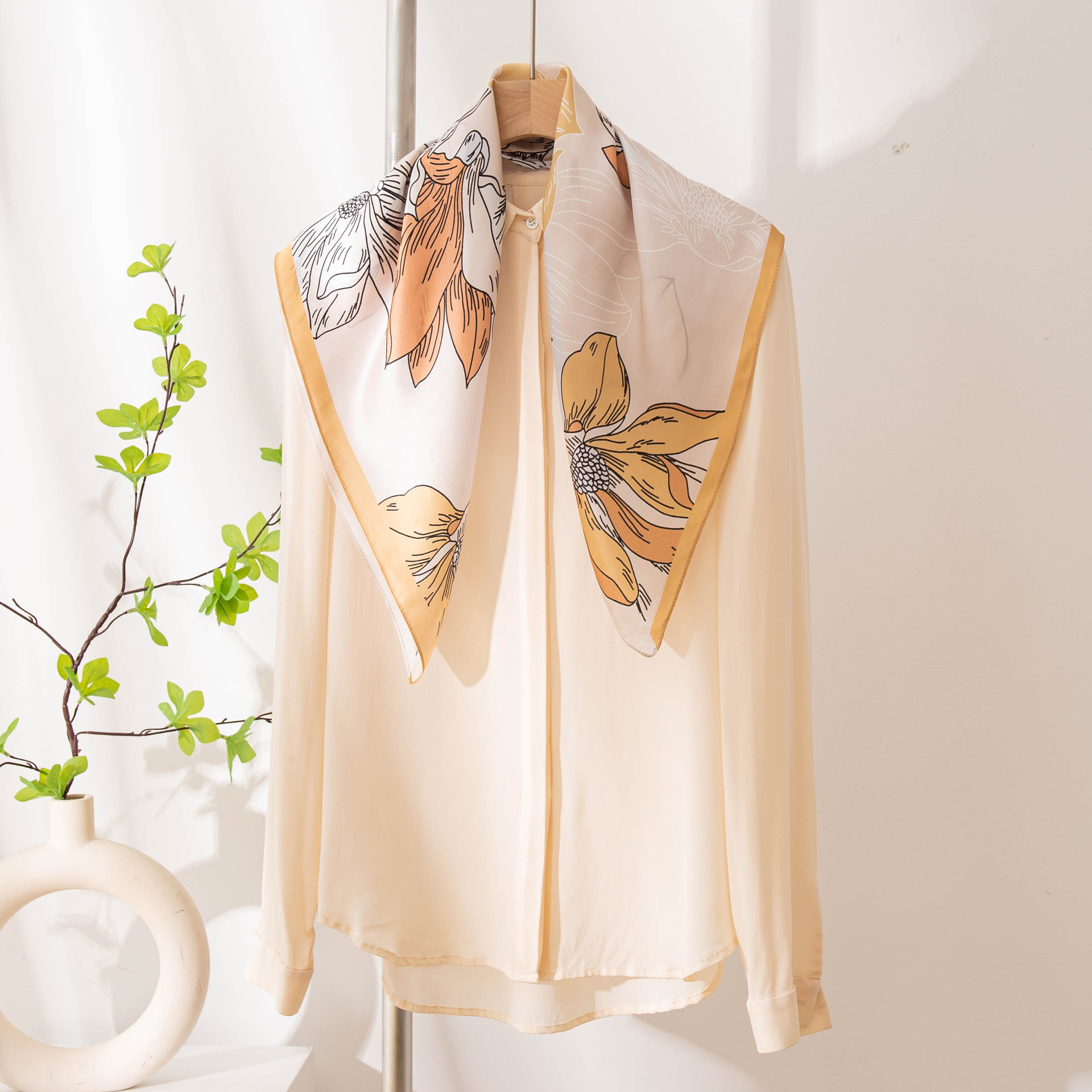 夏の新スタイル 100% 桑シルクシルクスカーフ大正方形スカーフ通勤アウタースカーフショールスカーフクロスボーダー卸売