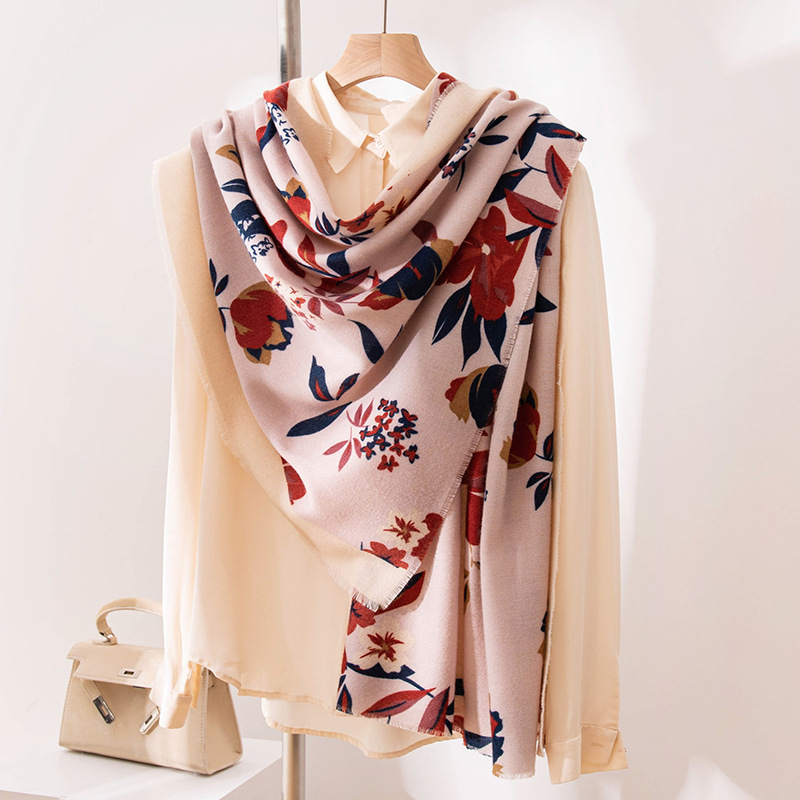 クロスボーダー2025春秋新作模造カシミヤマフラーストール高級感百合カラーマフラー保温卸売り