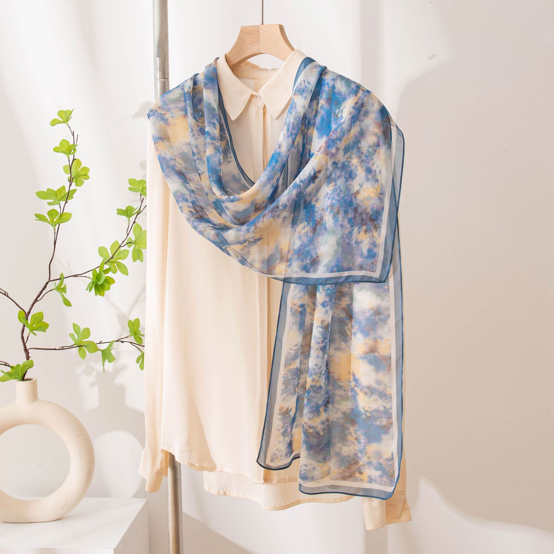 国境を越えた卸売夏の新しいスタイル 100% マルベリーシルク薄いロングショールスカーフ柔らかく多用途で実用的なガーゼスカーフ