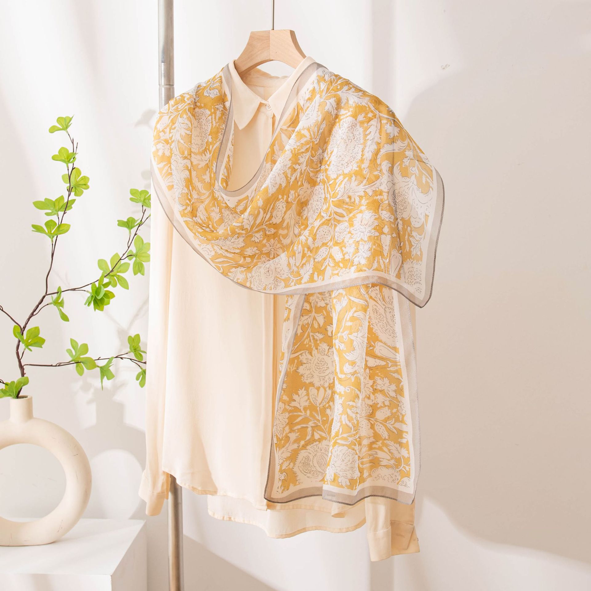 2025年夏新作 桑蚕糸シルクスカーフ 軽くて暖かい万能スカーフ 薄手ロングショール 卸売