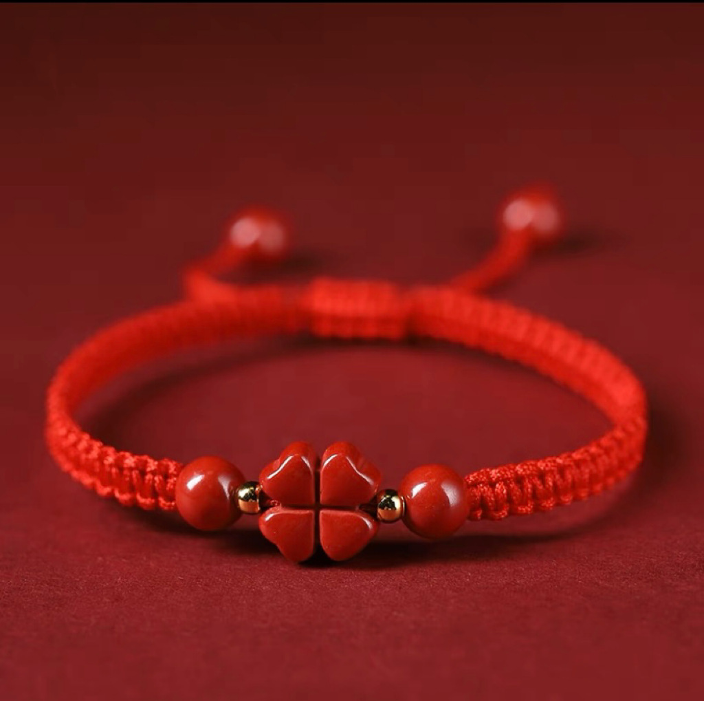 2023年朱砂四葉草手串レディース男性本命年編み手綱女性夏幸運赤いひもブレスレット