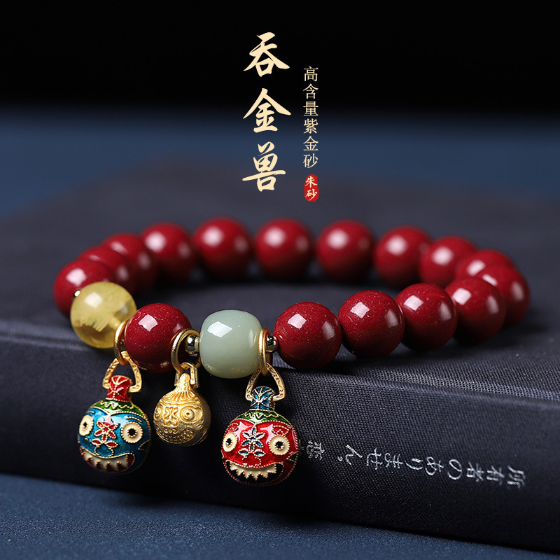朱砂手串2023年兎年新作女性本命年プレゼント紫金砂和田玉呑金獣ブレスレット輸送