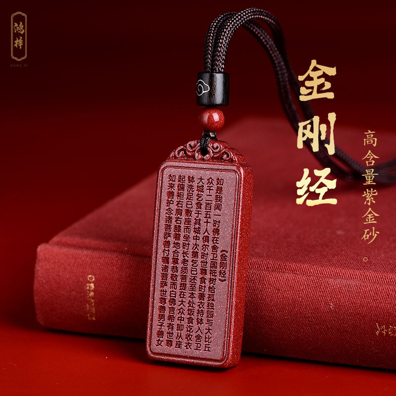 原鉱の朱砂のペンダントの女性の金剛経のネックレスの男性の本命の年の心は何もない札のペンダントを通じて平安ペンダントです。