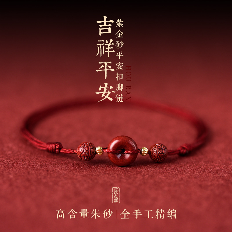 真朱砂平安は足の鎖の女性の赤い縄の2021の新型の招財の天然の古法の本命の年の足の縄を掛けます。