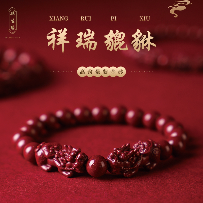 朱砂手串2022年虎年新作女性本命年プレゼント紫金砂和田玉呑金獣ブレスレット