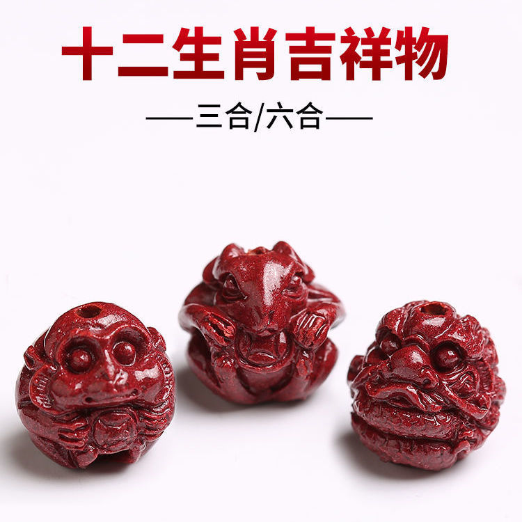 朱砂生肖円珠散珠十二生肖三合六合貴人2021ブレスレットアクセサリー