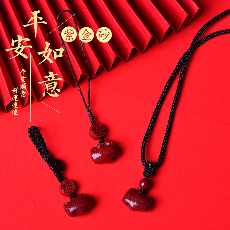 朱砂福錠如意ペンダント男女児童ペンダント手作りシンプルな携帯チェーンキーホルダーネックレス