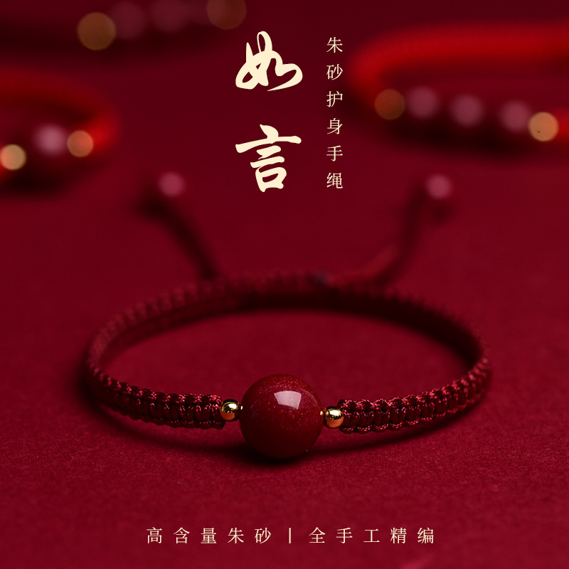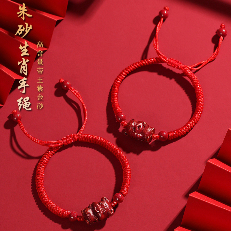 保真朱砂本命年紅縄幸運珠ブレスレット女性編み手綱男カップル手串年虎プレゼント