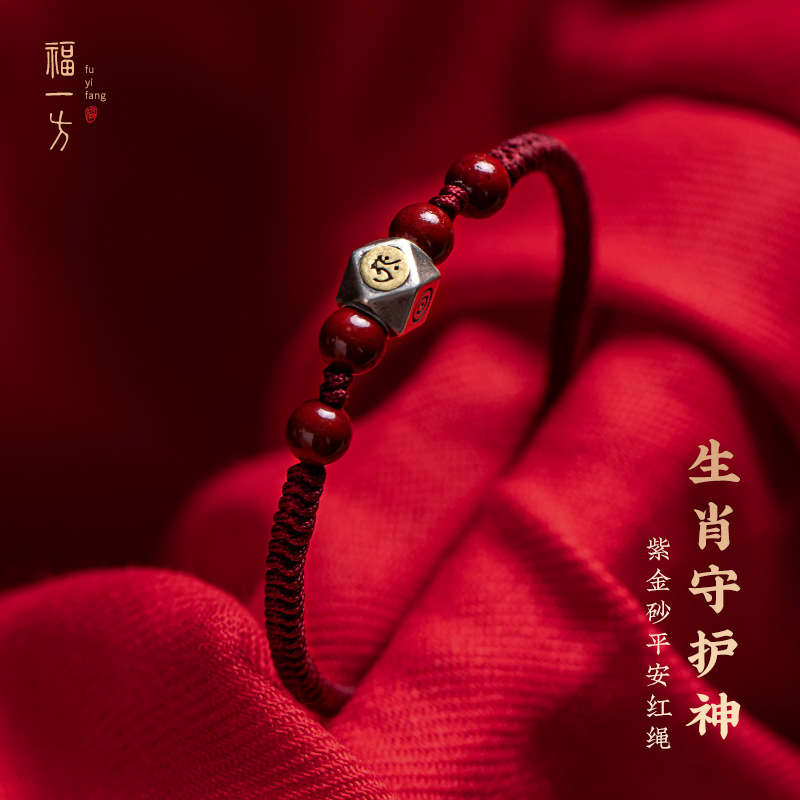 朱砂十二生肖赤縄ブレスレットベビー手縄虎年男女子供本命年手串紫金砂卸売り