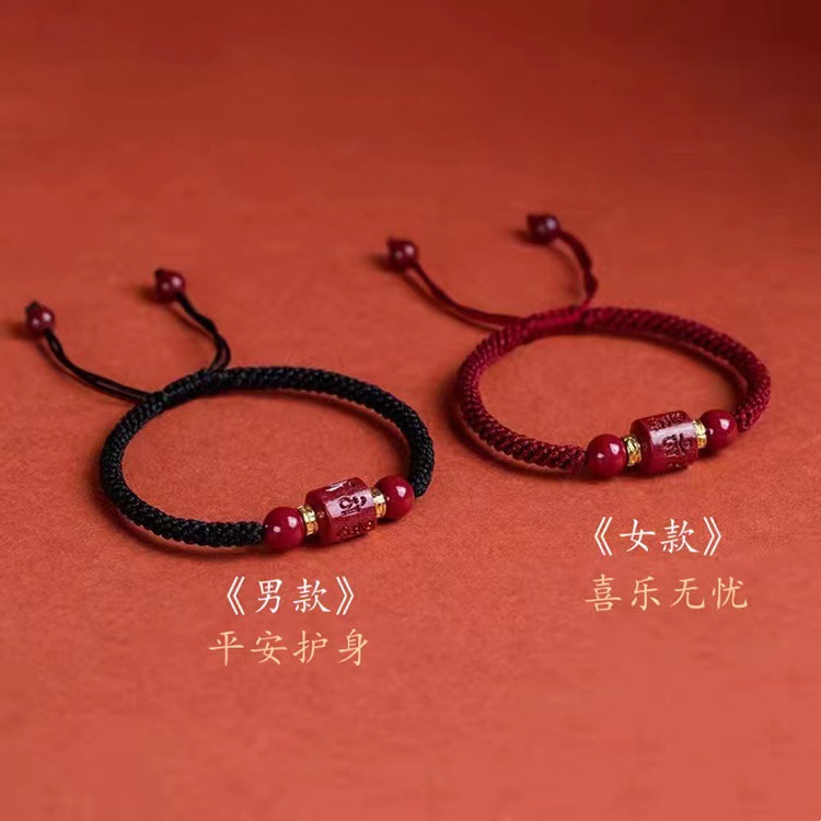 朱砂手串男士本命年編み手縄女夏幸運紅縄ブレスレット