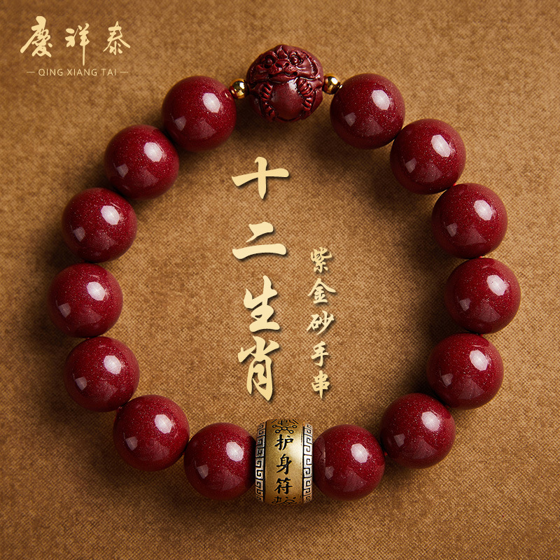 保真朱砂ピシュピストブレスレット女性本命年虎年紫金砂手串男女カップルプレゼント