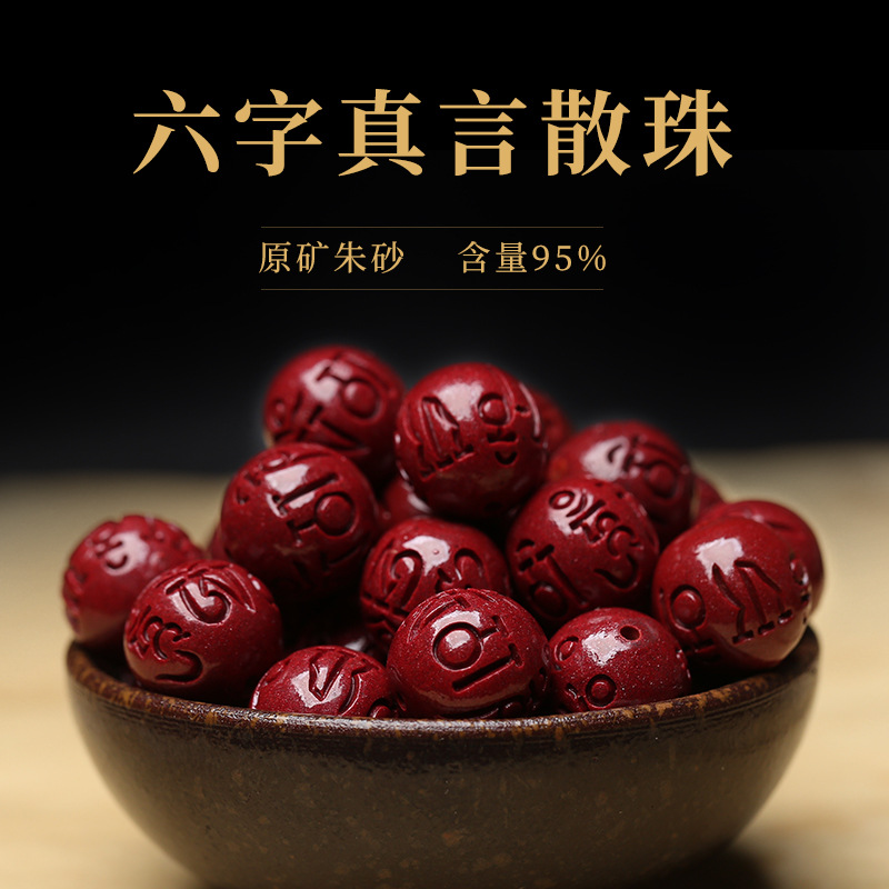 原鉱紅朱砂六字真言ブレスレットビーズ