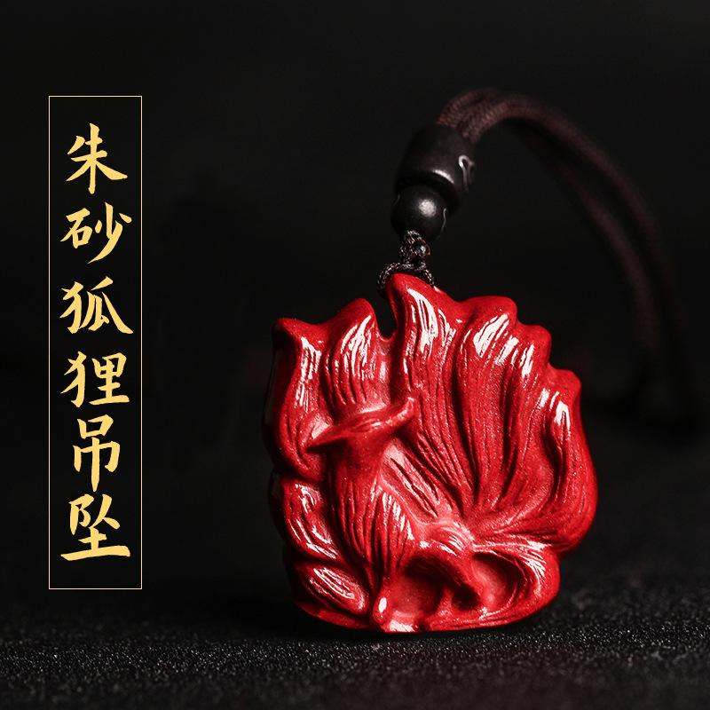 朱砂九尾狐ペンダント女性原鉱石赤紫金砂狐ネックレスペンダント男性アクセサリーカップルプレゼント