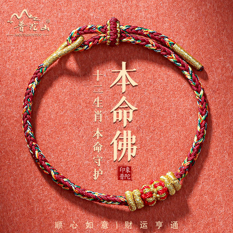 朱砂手縄本命仏紅縄ブレスレット女男本命年守護神手編み手串プレゼント