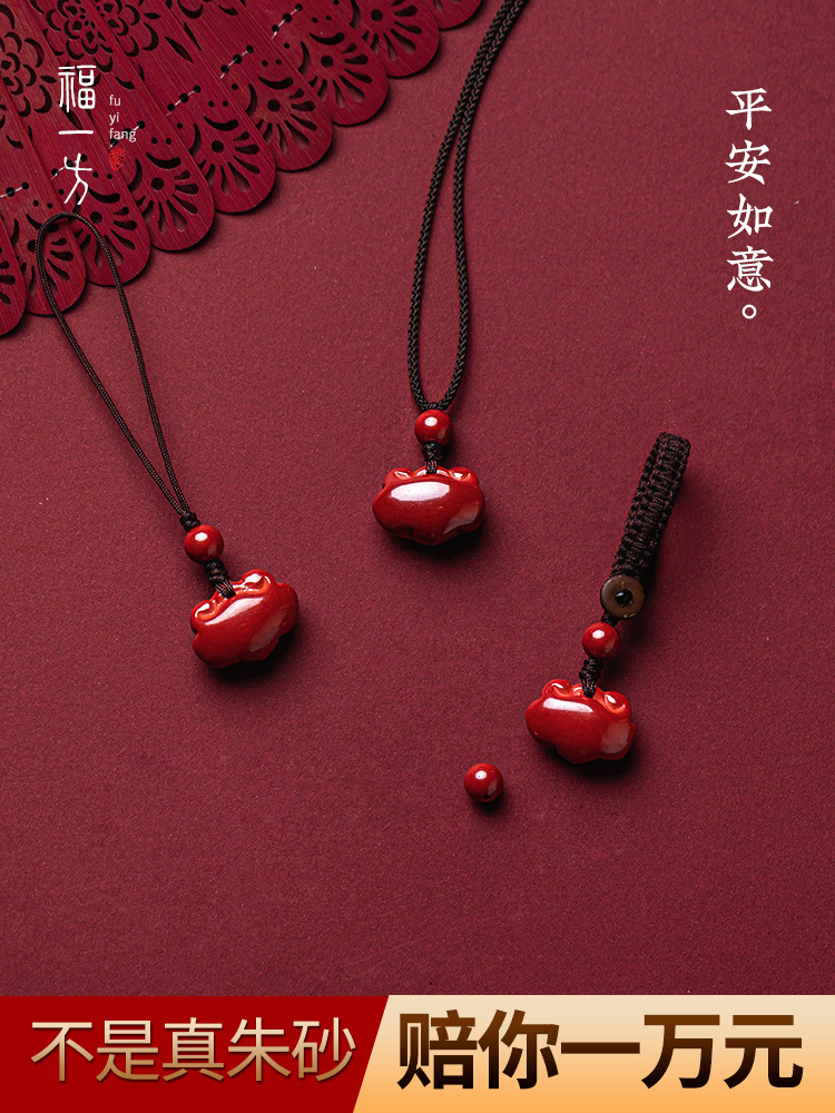 朱砂原石如意男女個性小ペンダントネックレス携帯チェーンキーホルダーペンダント